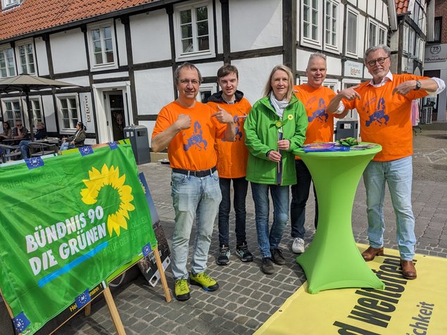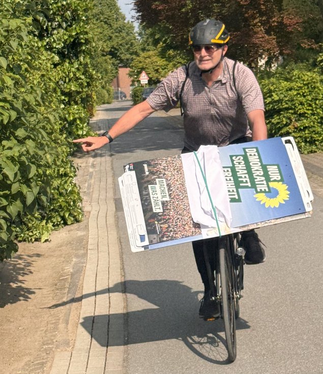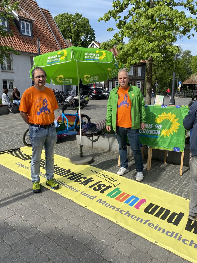 Schon im Sommer 2021 machte Sebastian Stölting Haustürwahlkampf mit uns in Rheda und Wiedenbrück - damals als Bundestagskandidat für den Kreis Gütersloh. Heute war er wieder mit Christiane Braun in Wiedenbrück unterwegs, um Werbung für die Europawahl am 9. Juni zu machen. Diesmal ist es besonders wichtig, alle Wahlberechtigte zur Wahl einer demokratischen Partei aufzurufen, um einen Rechtsruck in Europa zu verhindern. Und natürlich um die Grünen im Europaparlament zu unterstützen, sowohl unsere Spitzenkandidatin Terry Reintke als auch ihr vielen fleißigen Kolleg*innen, von denen einige in letzter Zeit bei uns im Kreis zu Besuch waren. Gestern war in Harsewinkel Martin Häusling (Landwirtschaft), vorgestern in Gütersloh Alexandra Geese (Digitalitisierung, gegen Hass und Hetze im Internet), im März in Rheda-Wiedenbrück Anna Cavazzini (Lieferkettengesetz, Recht auf Reparatur), und am Montag ist in Gütersloh Jutta Paulus (Naturschutz und Biodiversität).