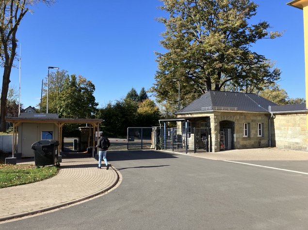 Das Gelände in einer ehemaligen Kaserne ist rundherum abgesperrt und kann nur durch eine Schranke und an den Sicherheitskräften vorbei (Personalausweis notwendig) betreten werden.