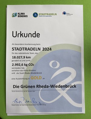 Das war nach 2023 erneut der erste Platz beim Stadtradeln in Rheda-Wiedenbrück.