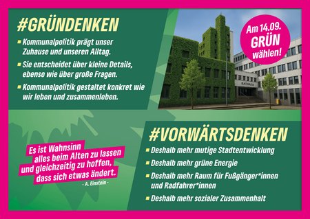 Mein Motto ist darüber hinaus Vorwärtsdenken. Gründenken. Eine Politik, die nicht beim Status quo stehen bleibt und deutlich mehr will als ein bisschen kosmetisches Aufhübschen, die Verantwortung für morgen übernehmen möchte. Den Mut haben, Veränderungen anzustoßen, auch wenn sie unbequem sind. Echte Lösungen entstehen nur, wenn wir uns gemeinsam mehr zutrauen – als Stadt, als Politik, als Gemeinschaft.